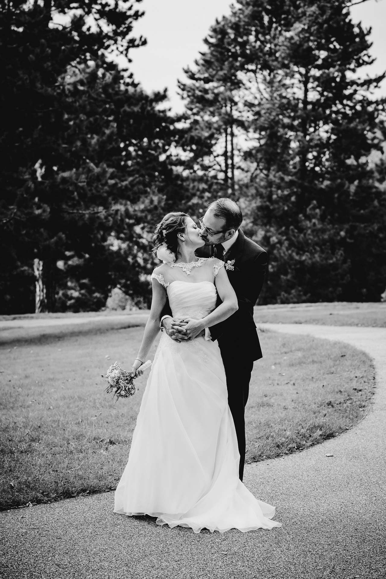 Nach den Gratulationen wurde auf das Hochzeitspaar angestoßen, und anschließend haben wir uns zu dritt nebenan in den Herminghaus Park fürs Brautpaarshooting begeben. Ein wunderschöner Park mit vielen tollen Ecken, zahlreichen Bäumen und Wiesen und schönen Wegen. Wir sind spazieren gegangen und haben dabei entspannt schöne Hochzeitsfotos gemacht. Die zwei waren ganz großartig, und wir hatten sehr viel Spaß!
