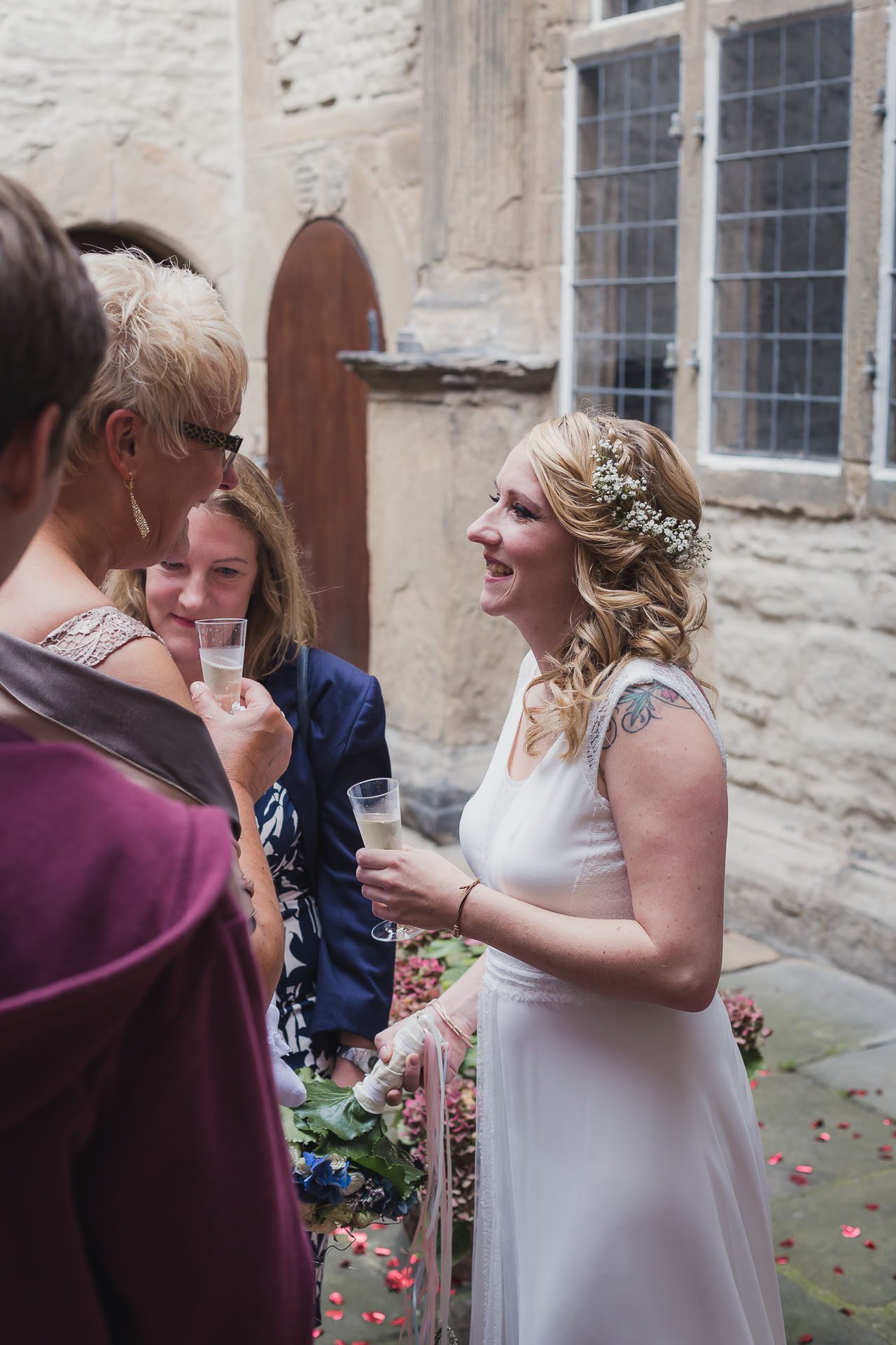 Die standesamtliche Hochzeit im Haus Herbede war sehr schön und emotional, und als Überraschung für das Brautpaar haben Familienangehörige für die Trauzeremonie eine Sängerin mit einer grandiosen Stimme organisiert. Nach der Trauung und den Gratulationen gab es im Innenhof des historischen Rittergutes einen Sektempfang, und wir haben die Zeit dort für Familienbilder und Gästefotos genutzt.